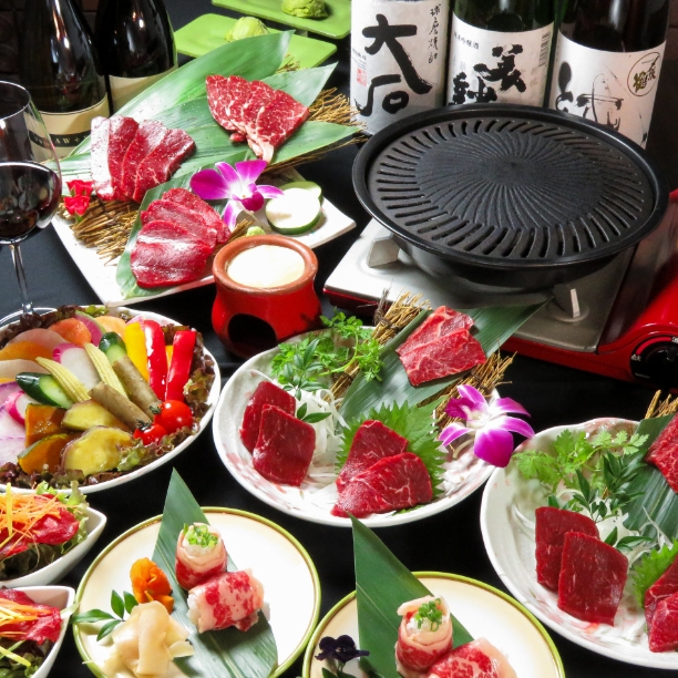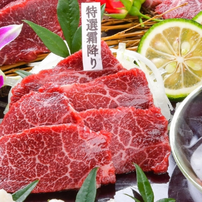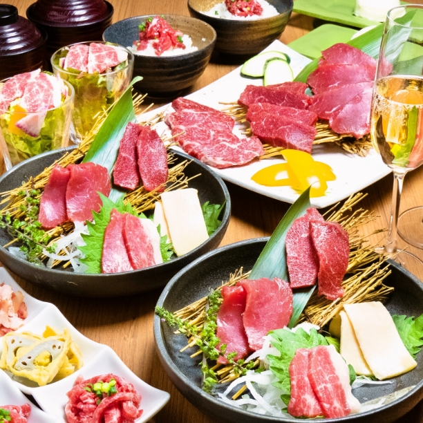 馬菜では、熊本県産の極上馬肉を中心に据えた、宴席のための特別なコースをご用意しております。